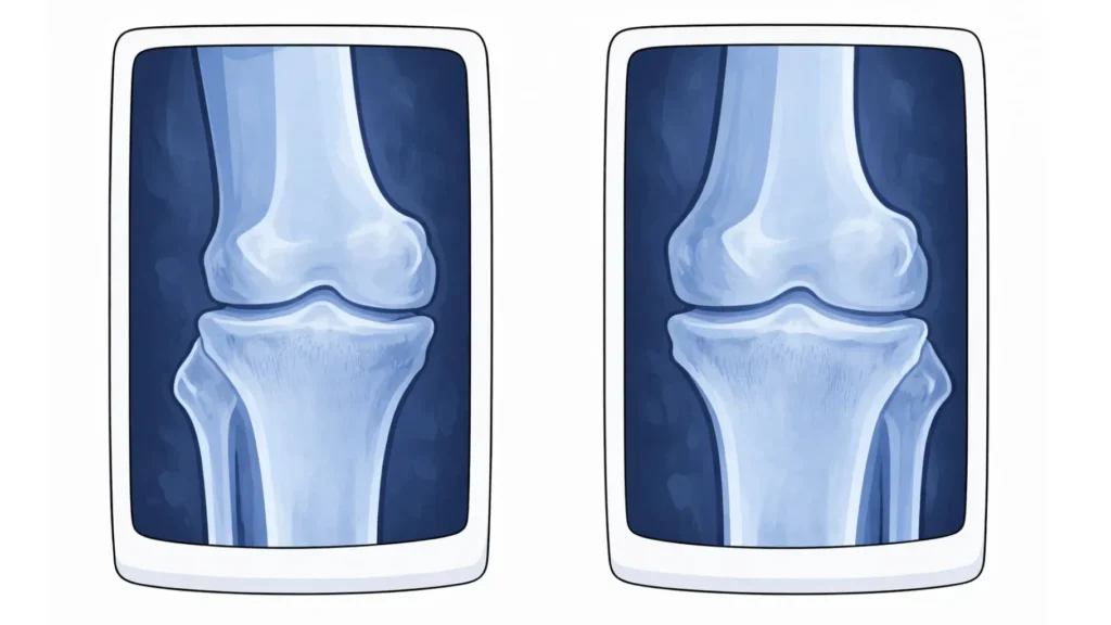 Afwijkingen op röntgenfoto's bij knieartrose hoeft helemaal niet te betekenen dat men pijn ervaart, omdat....
